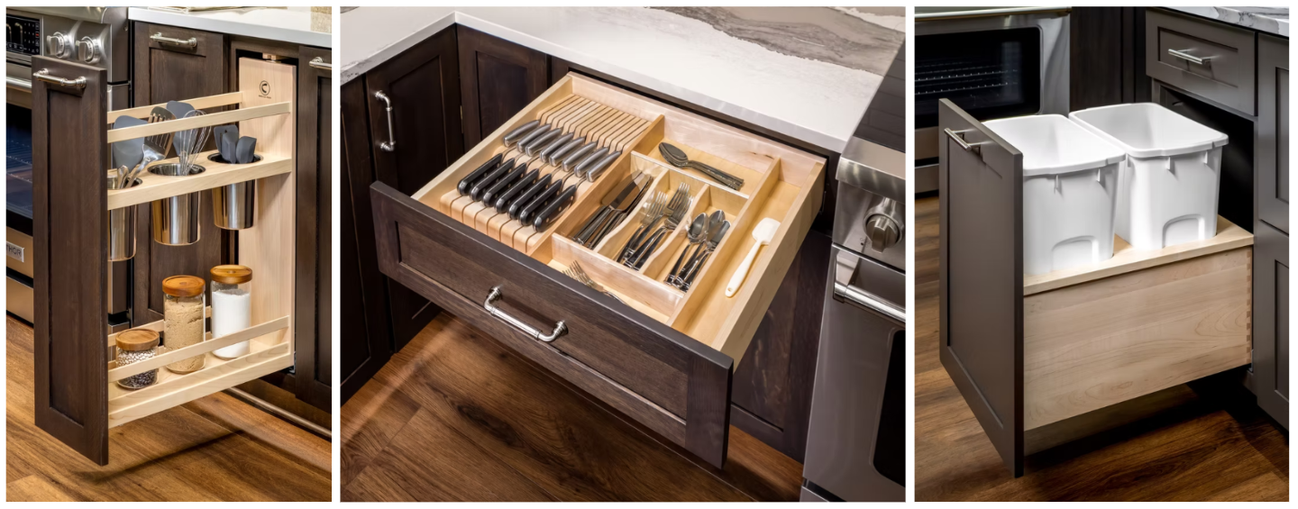 Rachel: Inserts and storage solutions like trash pullouts, spice drawers, silverware trays! They are the key to keeping everything organized.